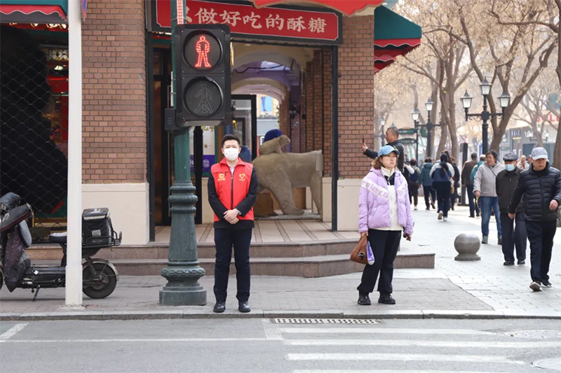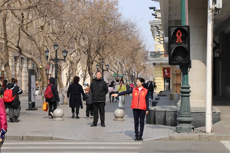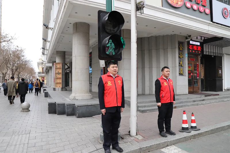 初春的哈爾濱,依然有些寒風(fēng)料峭。金谷大廈黨員、團(tuán)員志愿者們身穿紅色馬甲,每?jī)扇藶橐唤M,在中央大街西二道街與上游街交口進(jìn)行交通協(xié)管志愿服務(wù),根據(jù)交通信號(hào)燈,提示過往行人遵守交通法規(guī),文明出行。對(duì)無(wú)視通行信號(hào)的行人進(jìn)行勸回,提醒注意交通安全;對(duì)詢問地點(diǎn)、方向的行人給予耐心解答、溫馨相助。