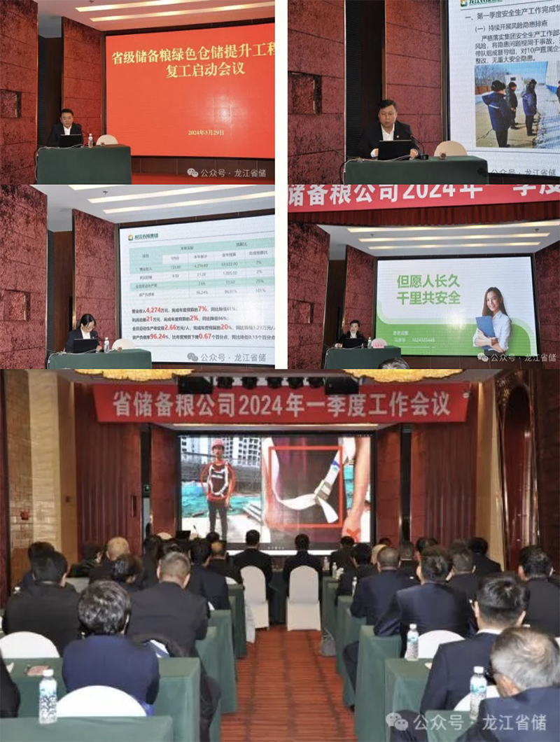 為貫徹落實農(nóng)投集團一屆五次職代會及公司一屆二次職代會精神,全面筑牢公司安全發(fā)展防線,促進省級儲備糧綠色倉儲提升工程項目建設(shè)順利復(fù)工,近日,儲備糧公司召開2024年第一季度工作會議暨“安全生產(chǎn)質(zhì)效提升年”啟動會、一季度經(jīng)營工作會、綠色倉儲項目復(fù)工啟動會。公司黨委書記、董事長李云峰出席會議并講話,公司黨委副書記、總經(jīng)理楊勇主持會議。