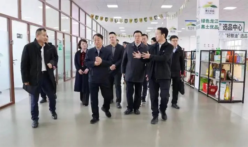 調(diào)研中,劉海城一行參觀了農(nóng)投數(shù)字農(nóng)業(yè)產(chǎn)業(yè)園“黑土優(yōu)品”展廳與“黑龍江好糧油”展廳,詳細了解了園區(qū)發(fā)展歷程、產(chǎn)業(yè)布局以及企業(yè)運營等情況,并對園區(qū)的發(fā)展成果給予了充分肯定。李國強對省商務廳一行表示歡迎,并對農(nóng)投集團基本情況進行了簡要介紹。