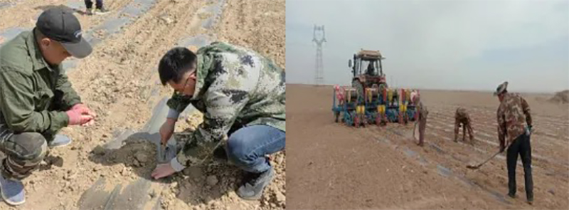 龍疆金谷公司根據(jù)新疆第十師北屯市一八三團(tuán)氣溫和土壤墑情實(shí)際,科學(xué)制定錯(cuò)期播種計(jì)劃,搶抓春播時(shí)節(jié),緊張有序開(kāi)展鮮食玉米播種工作。員工現(xiàn)場(chǎng)查看鮮食玉米玉米種子播種情況 。