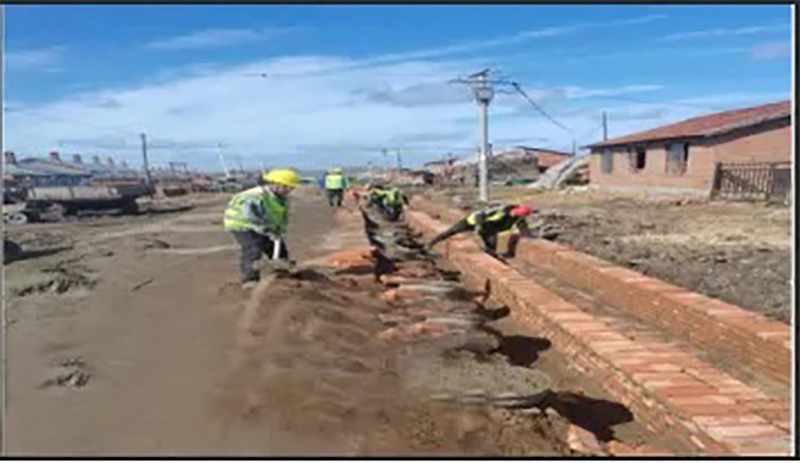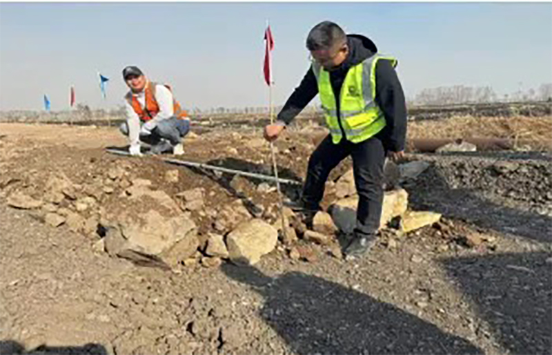 在黑龍江省海倫市“五好兩宜和美鄉(xiāng)村”項(xiàng)目中開展排水溝砌筑施工