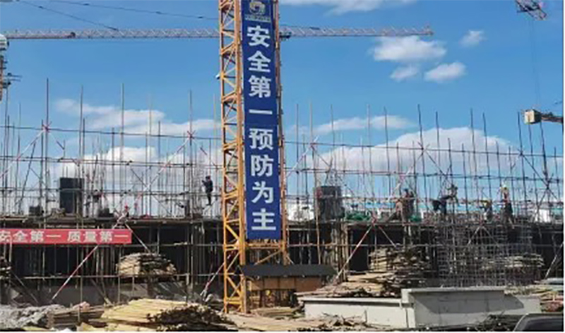 在海倫市棚改項(xiàng)目(海倫市紫金公館住宅小區(qū))工地施工現(xiàn)場(chǎng)開展搭建工作