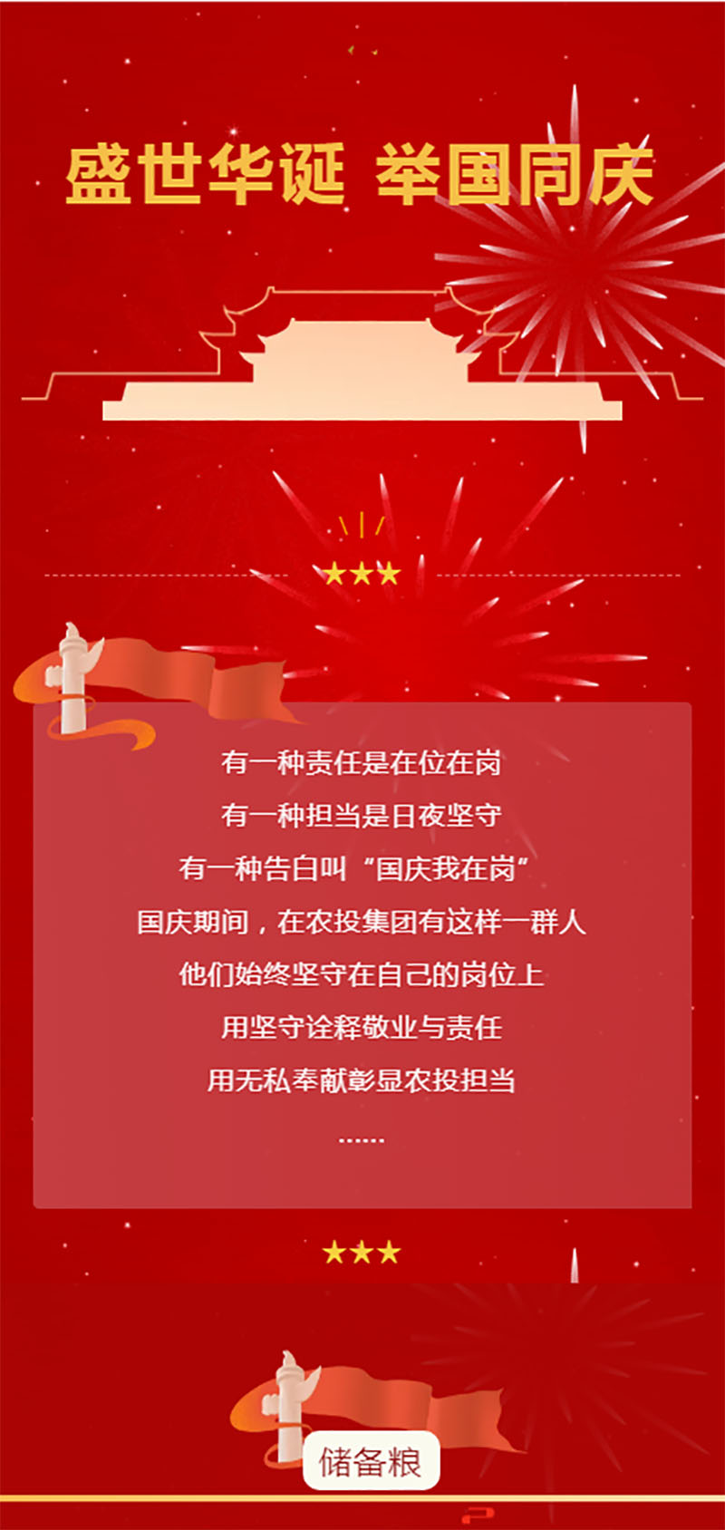 有一種責(zé)任是在位在崗,有一種擔(dān)當(dāng)是日夜堅(jiān)守。在國慶期間,省儲備糧公司有著這么一群省儲人,他們始終堅(jiān)守在自己的崗位上,用堅(jiān)守詮釋著責(zé)任與擔(dān)當(dāng),他們扎根在糧食倉儲一線,為確保糧食儲存安全默默奉獻(xiàn)。