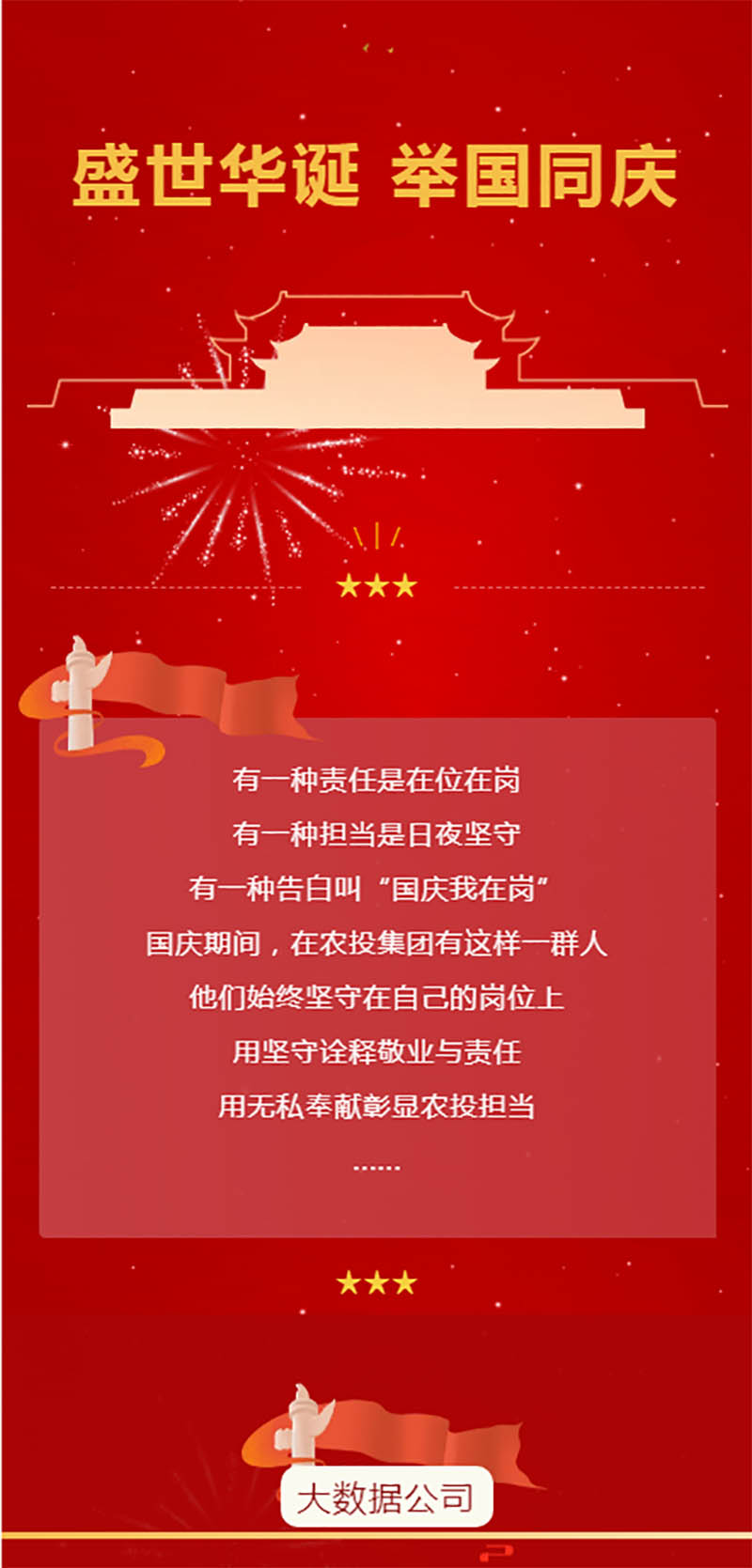 金秋十月,丹桂飄香。國慶期間,大數據公司全體員工深知肩上的責任與擔當,秉持 “專業(yè)服務,創(chuàng)新引領,科技賦能” 的理念,隨時待命、聞令而動,以更加昂揚的斗志、更加敬業(yè)的精神、更加高效的行動,不斷推動科技與農業(yè)的深度融合,為實現鄉(xiāng)村振興、農業(yè)現代化的宏偉目標貢獻自己的力量。