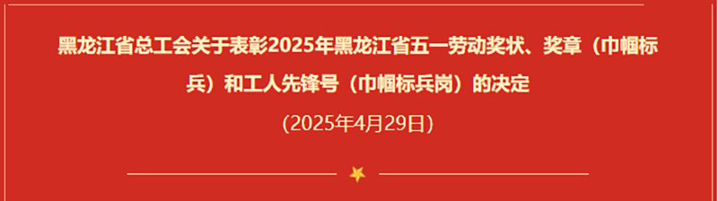 日前,黑龍江省總工會發(fā)布《關(guān)于表彰2025年黑龍江省五一勞動獎狀、獎?wù)拢ń韼綐?biāo)兵)和工人先鋒號(巾幗標(biāo)兵崗)的決定》,農(nóng)投集團權(quán)屬企業(yè)儲備糧公司榮獲“2025年黑龍江省五一勞動獎狀”、黑龍江農(nóng)投大數(shù)據(jù)科技有限公司事業(yè)二部榮獲“2025年黑龍江省工人先鋒號(巾幗標(biāo)兵崗)”。