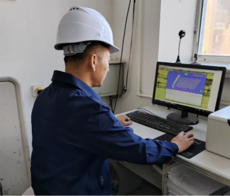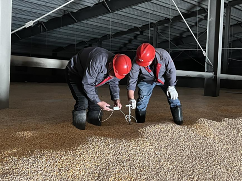 △良友金谷公司員工檢測糧溫,做好通風(fēng)工作。