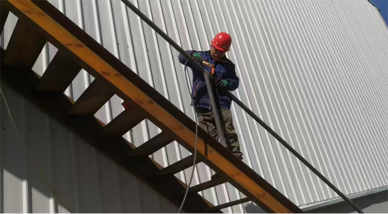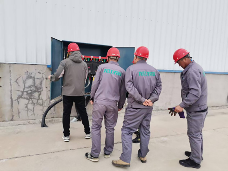 △樺川縣興業(yè)糧油員工檢查用電情況。