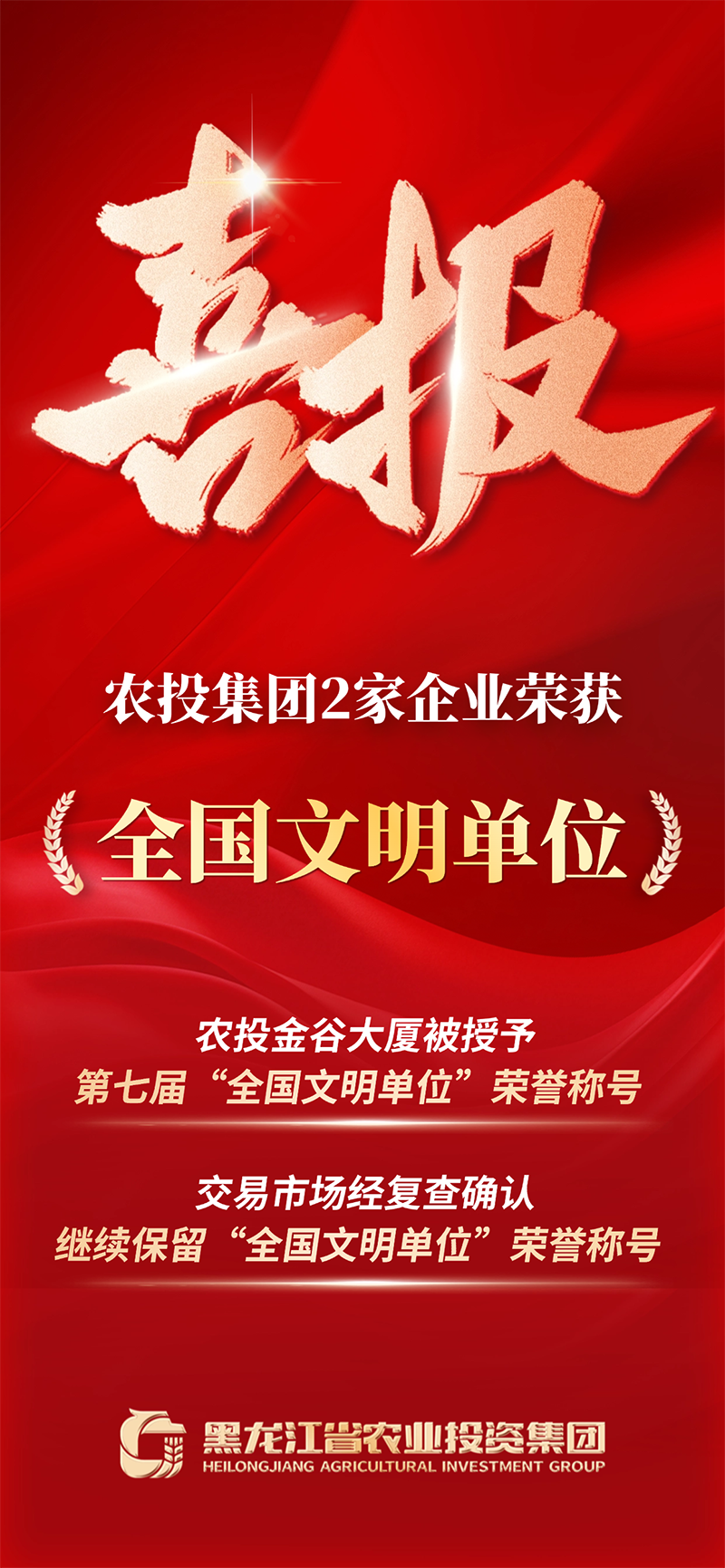 金谷大廈 黑龍江金谷大廈有限公司創(chuàng)建于1996年,是國(guó)有四星級(jí)商旅酒店,省內(nèi)國(guó)企酒店的龍頭企業(yè)。公司全面貫徹落實(shí)習(xí)近平總書(shū)記發(fā)展文旅產(chǎn)業(yè)、冰雪經(jīng)濟(jì)、新質(zhì)生產(chǎn)力重要指示精神及省委、省政府“品牌農(nóng)業(yè)”建設(shè)要求,打造“黑土優(yōu)品”①號(hào)餐廳,提升區(qū)域品牌形象,做出龍江味道、彰顯龍江魅力,先后榮獲“全國(guó)五一勞動(dòng)獎(jiǎng)狀”“全國(guó)模范職工之家”“全國(guó)誠(chéng)信經(jīng)營(yíng)示范單位”“全國(guó)質(zhì)量管理先進(jìn)單位”“省級(jí)文明單位標(biāo)兵”“省工人先鋒號(hào)”“黑龍江省企業(yè)文化成果”和省國(guó)資委系統(tǒng)“先進(jìn)基層黨組織”“龍江國(guó)企榜樣”等榮譽(yù)。 “全國(guó)文明單位”既是榮譽(yù),更是責(zé)任。農(nóng)投集團(tuán)將珍惜榮譽(yù)、再接再厲,以更高標(biāo)準(zhǔn)、更嚴(yán)要求,堅(jiān)持不懈用習(xí)近平新時(shí)代中國(guó)特色社會(huì)主義思想凝心鑄魂,充分發(fā)揮“全國(guó)文明單位”的示范引領(lǐng)作用,在服務(wù) “三農(nóng)”、助力鄉(xiāng)村振興的征程中勇挑重?fù)?dān),為龍江農(nóng)業(yè)強(qiáng)省建設(shè)貢獻(xiàn)農(nóng)投力量。